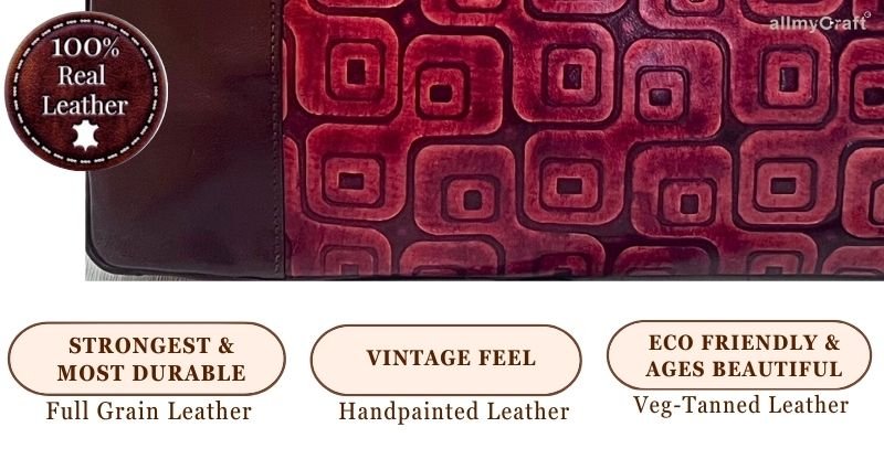 Made from Veg-tanned goat leather which is denser, stronger, and sturdier than chrome-tanned leather. Also, it ages beautifully and often lasts 10–20 years with basic proper care.